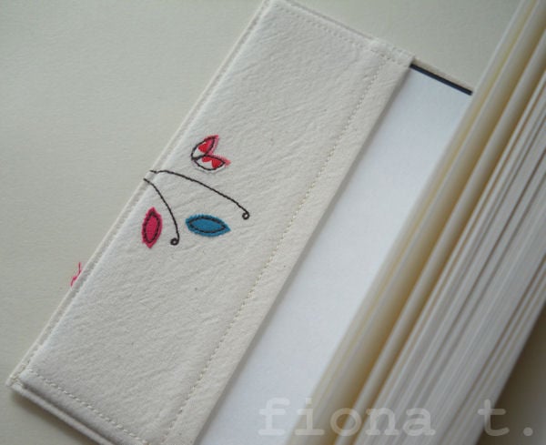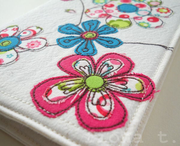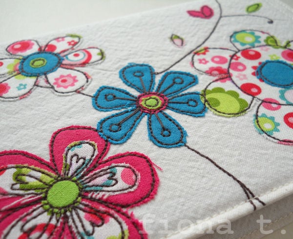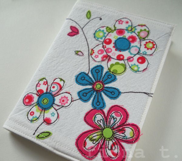 this notebook cover features a spray of pretty embroidered flowers, and is entirely made by me on a domestic sewing machine.