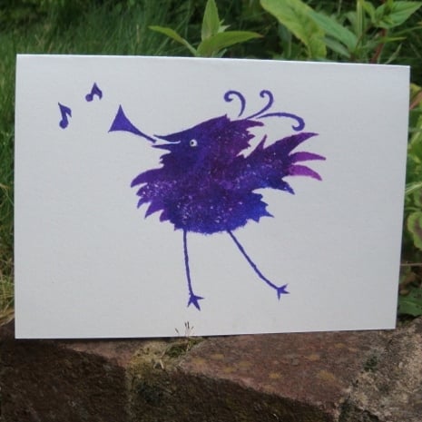 This fun birdie card will help you celebrate any birthday or celebration. This is an original design created for fun! This characterful birdie is hand painted using stencilling. My cards are all handmade using recycled card and envelopes. Each one is A6, blank for your own message and presented with an ice white envelope in biodegradable clear sleeve.