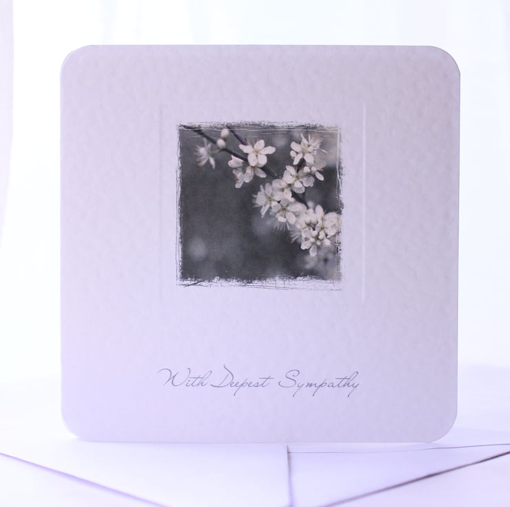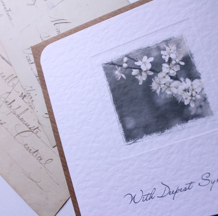 This simple condolence card, features a vintage inspired image of blossom in soft muted tones taken from one of my original photographs and printed onto the main body of the card.
