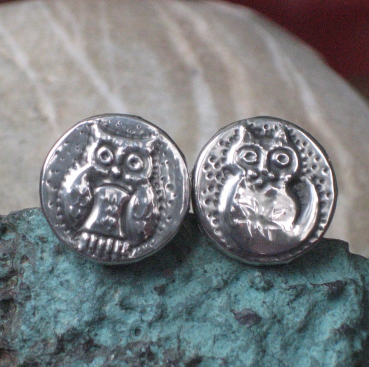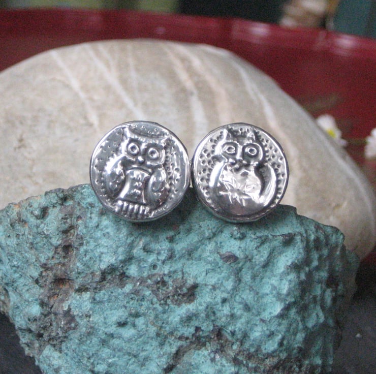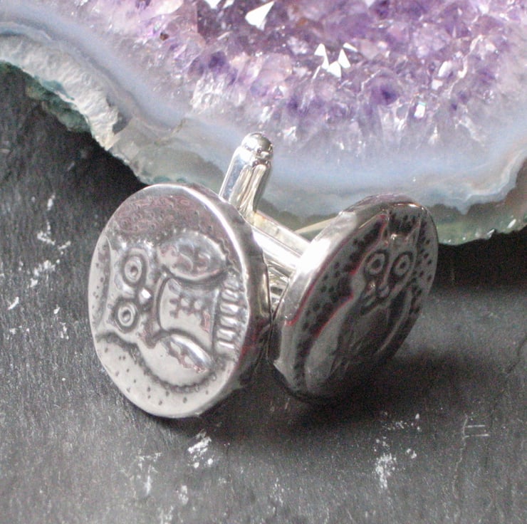 "The Owl and the Pussycat went to sea......" These cufflinks have been individually hand-crafted in shiny modern pewter, and feature the romantic pair from Edward Lear's rhyme. Each link measures 2cm,(0.75ins),across. They are presented in a smart grey gift box.