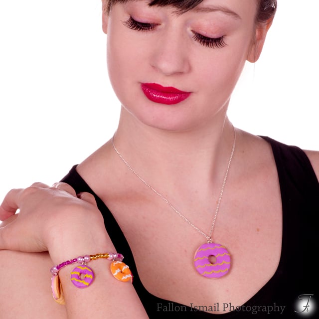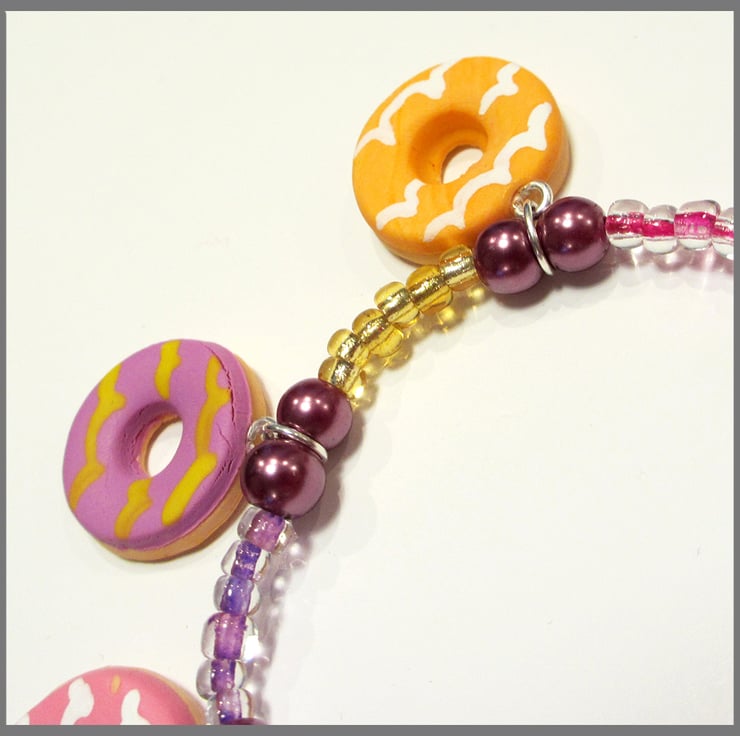 A gorgeous iced rings colourful bracelet, completed with the five iced biscuits, finished off with a branded HRJ tag! Pretty bead colours of purple, pink and yellow are used to make the bracelet up.