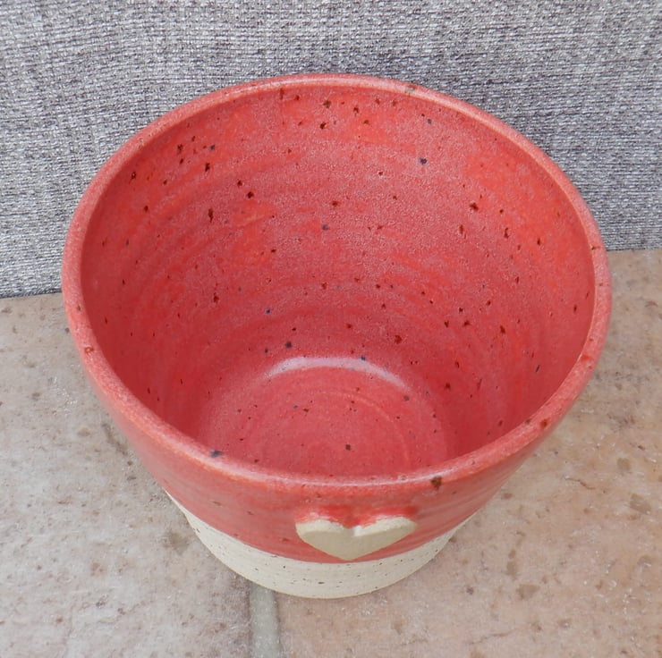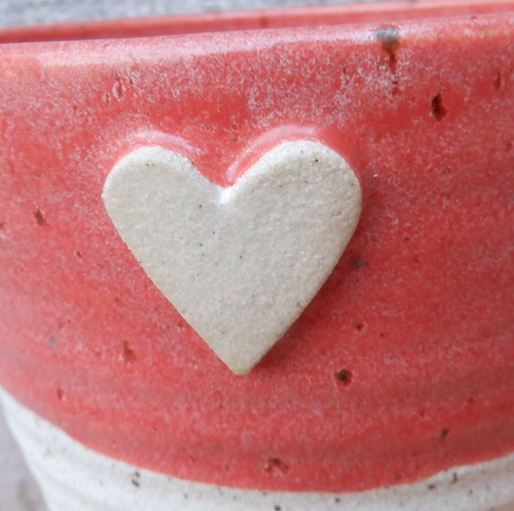 I threw this small plant holder on my potter's wheel using strong speckled stoneware clay and added a little heart detail.