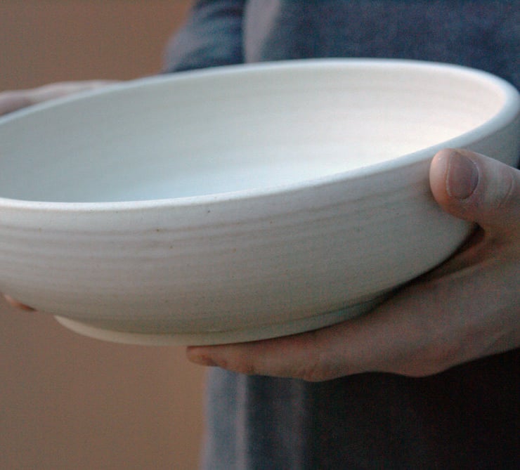 Hand thrown on my potters wheel this set of four stoneware pasta bowls will be glazed in a colour of your choice from the glaze chart. Each one features wide curving sides, a shallow foot ring and will be hand stamped with the Little Wren Pottery seal on the bottom.