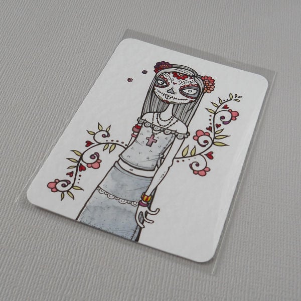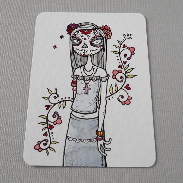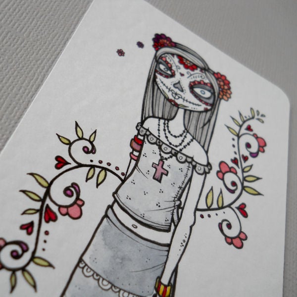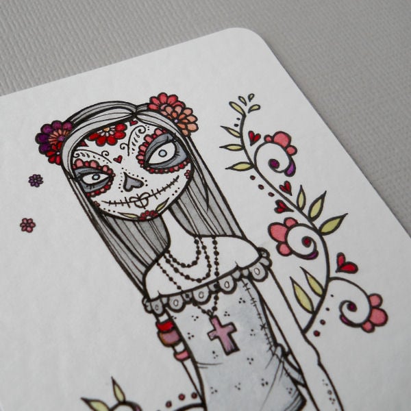 this sweetly sinister senorita is all ready to celebrate the day of the dead! dressed in her finest beads, and with her fanciest make up on, too.