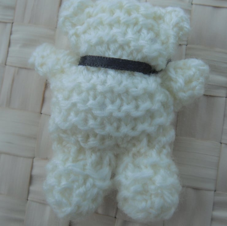 When i was little i use to love small toys that i could carry around in my pocket, especially bears and dolls. That is where my inspiration came from to knit this pocket size bear, even now grown up i still love to collect small teddy bears!
