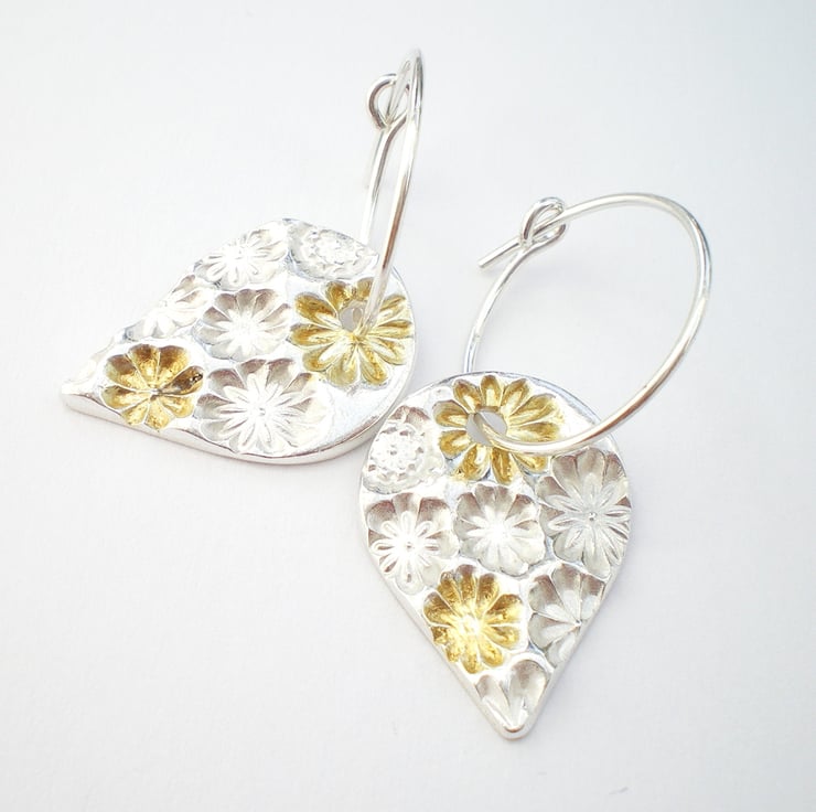 They have a floral texture which has 24ct gold fused to two of the flowers and then the remaining silver surface has been polished to a soft shine. The texture really stands out beautifully!