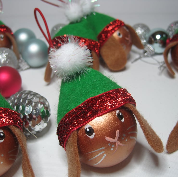 These would be a lovely early Christmas gift / present for a bunny lover to hang on their tree or to decorate rooms around the house. Buy just one or a set.