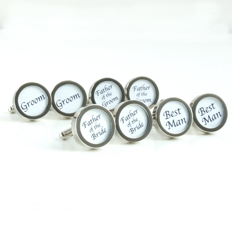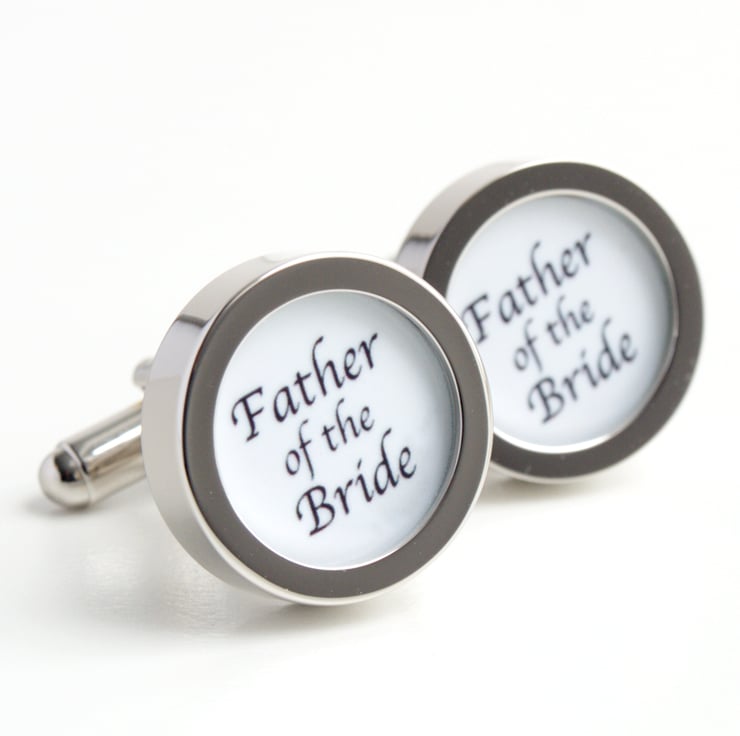 Wedding cufflinks for the Father of the Bride written in elegant black lettering on a white background. Part of a range of cufflinks for all of your wedding party. These can also made in your choice of colour, just let me know what you would like.