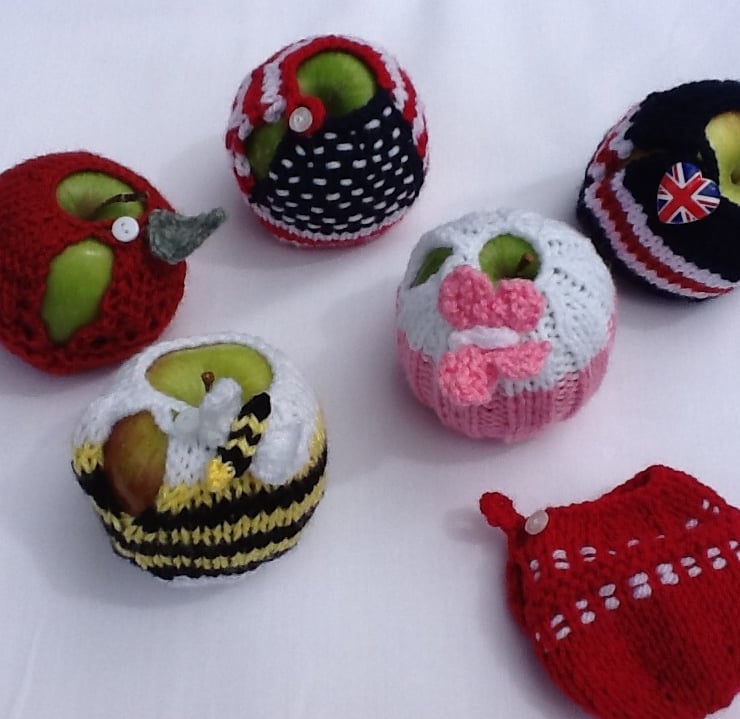 This is part of my exclusive apple cosy range designed by me, this design is my Buzzy Bee Apple Jacket Cosy, complete with non stinging bee. You will be the envy of your friends and colleagues, especially as it protects your apple from bruises and dents. Fits a medium average size UK shop apple.