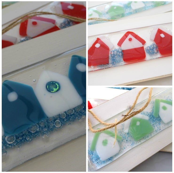 These scrummy little beach huts are made from fused glass and are sat in a sea of scrumptious bubbles