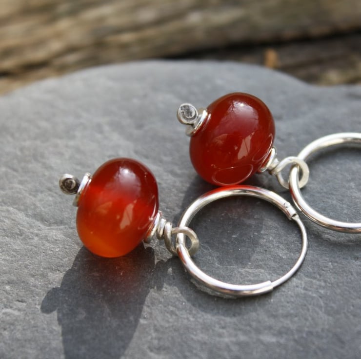 Available either on my handmade hooks or 15mm Creole hoops. See picture of carnelian pair for hoops. Let me know your preferance. If no preferance specified, hooks will be sent.