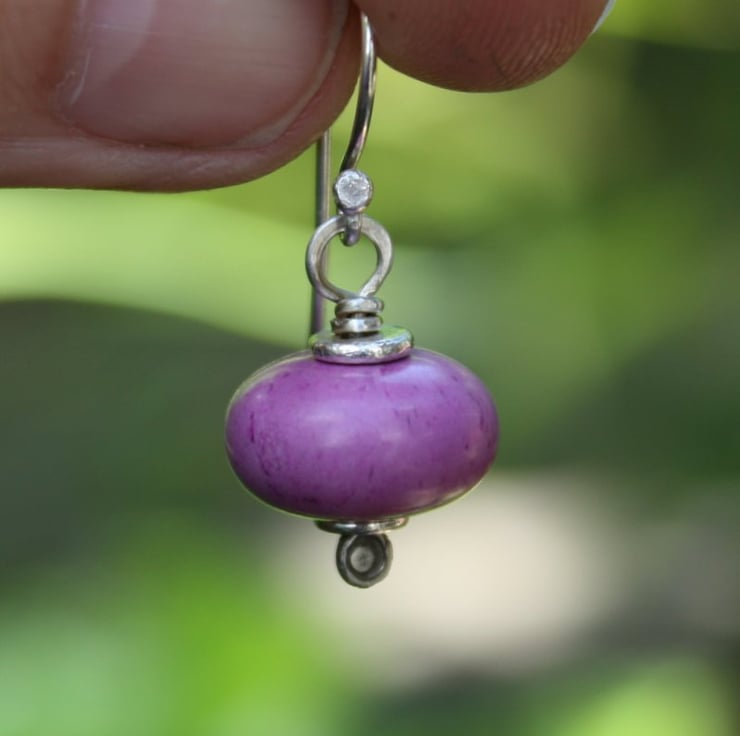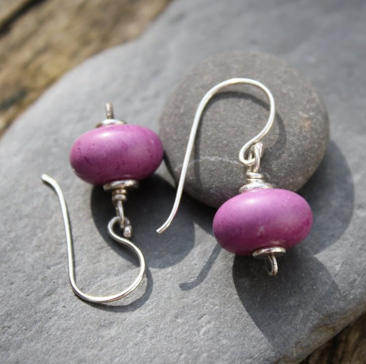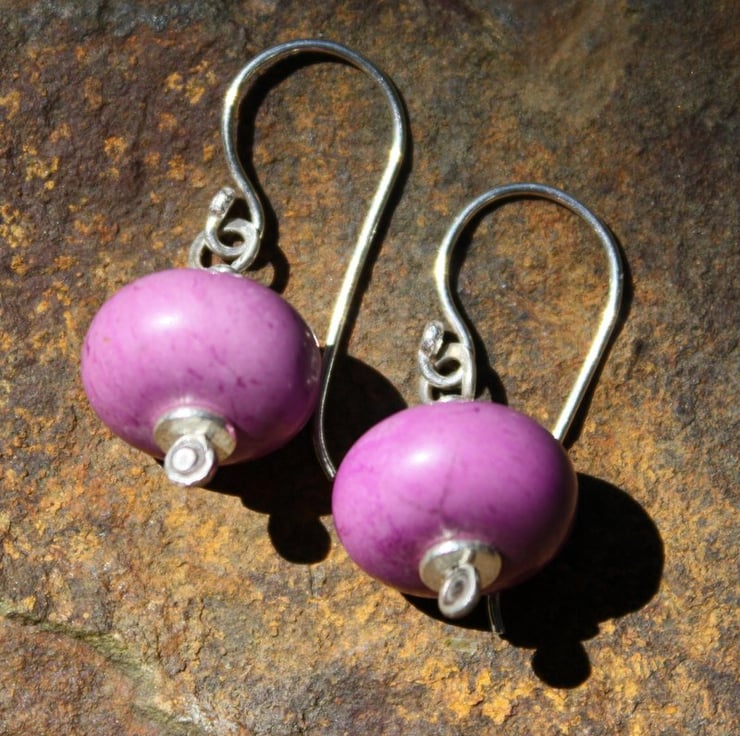 14mm Plump purple turquoise beads are combined with my hand forged silver headpins and washers.