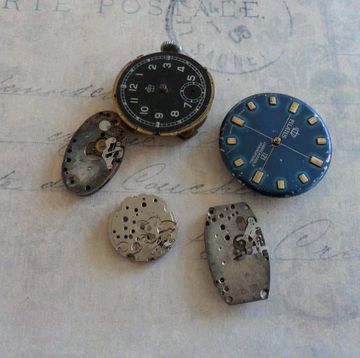 Here is a collection of 5 vintage watch movements, perfect to use in your Steampunk jewellery or assemblege projects. None of these old watches were in working order ... so these movements have been rescued.