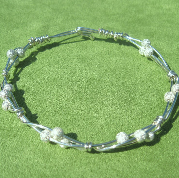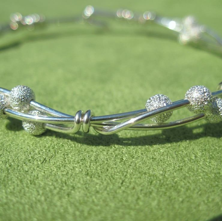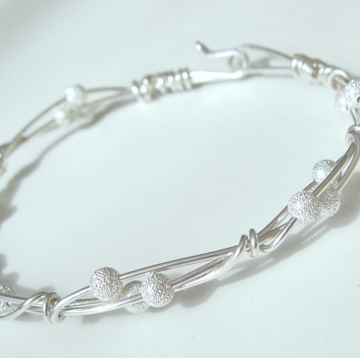 Silver plated hand twisted Bangle with integral formed clasp. interdispersed with