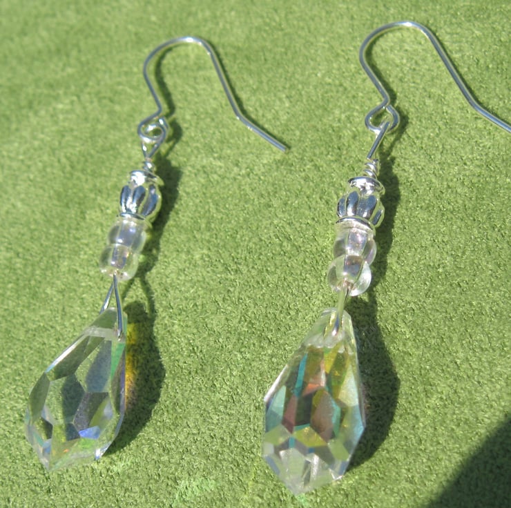 Swarovski crystal pendant drop earrings. Ornated with czech glass crystal silver lined and silver plated beads. All wires are silver plated. 1 1/2" (4cm) length drop from the earwires.