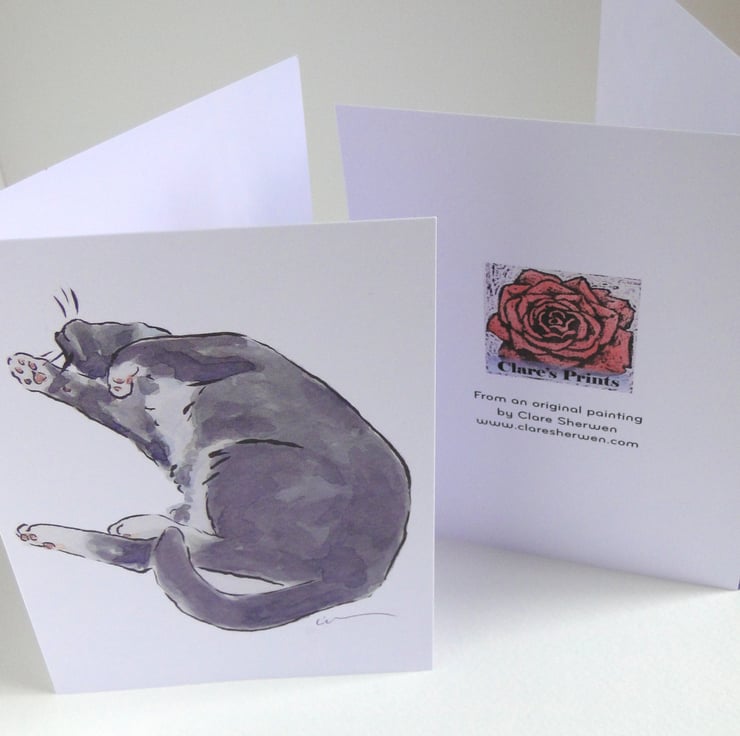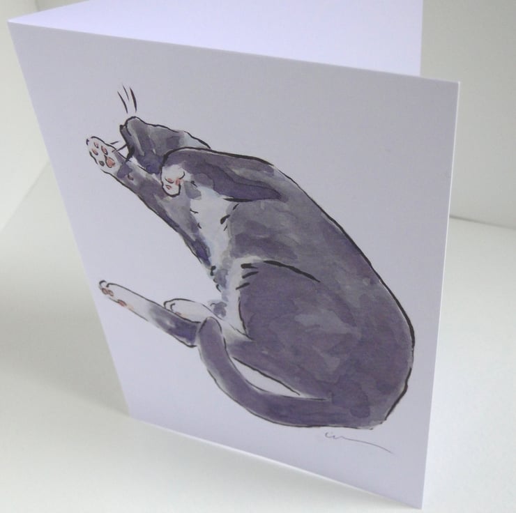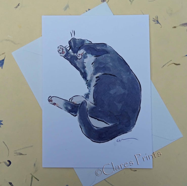 From a painting of a cute black and white cat called Zack that visits me for food and fuss! I wouldn't suggest tickling him as he will swipe your hand off, but it is my favourite painting of him!