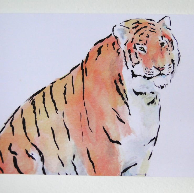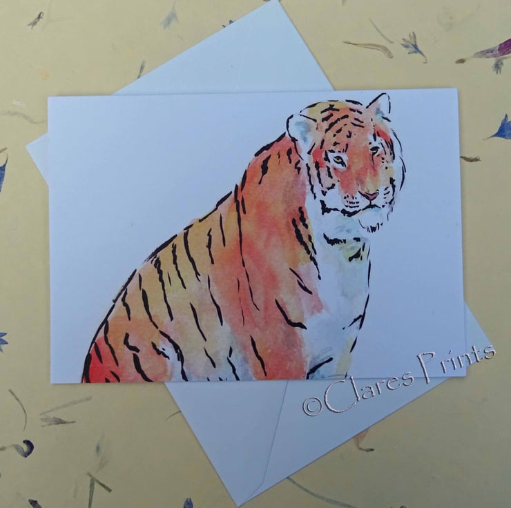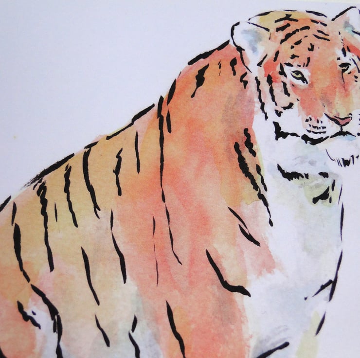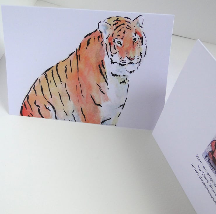 Blank greeting card from my original watercolour and ink painting Tiger