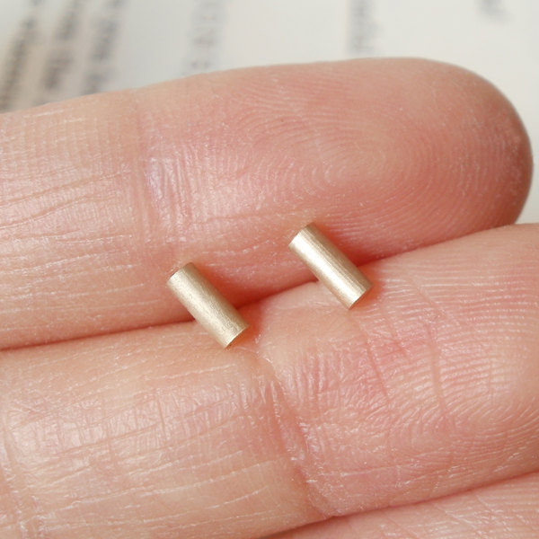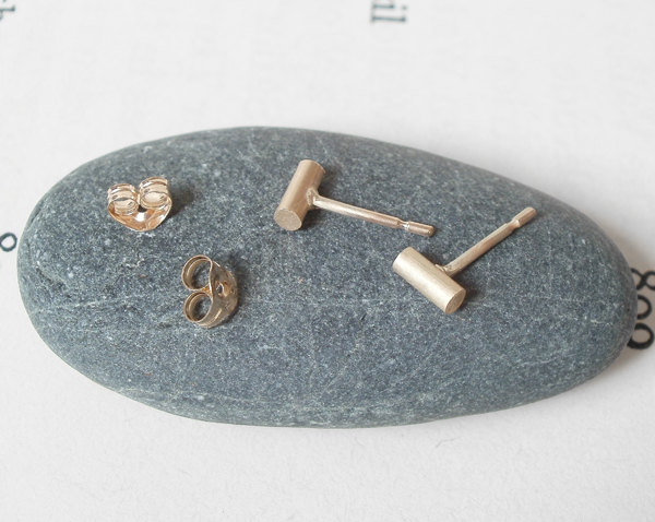 These simple bar ear studs are handmade from solid gold at my studio in Cornwall, southwest on the UK.