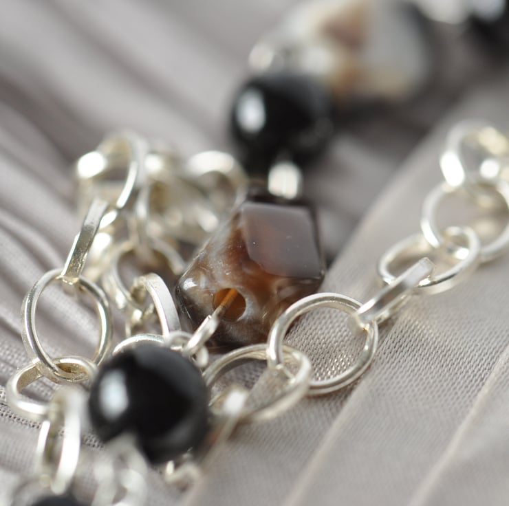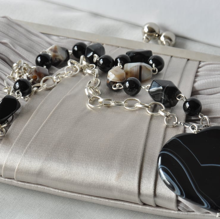 The colouring in the agate heart, a subtle mix of banding in white and brown with the black and silver, very sophisticated.