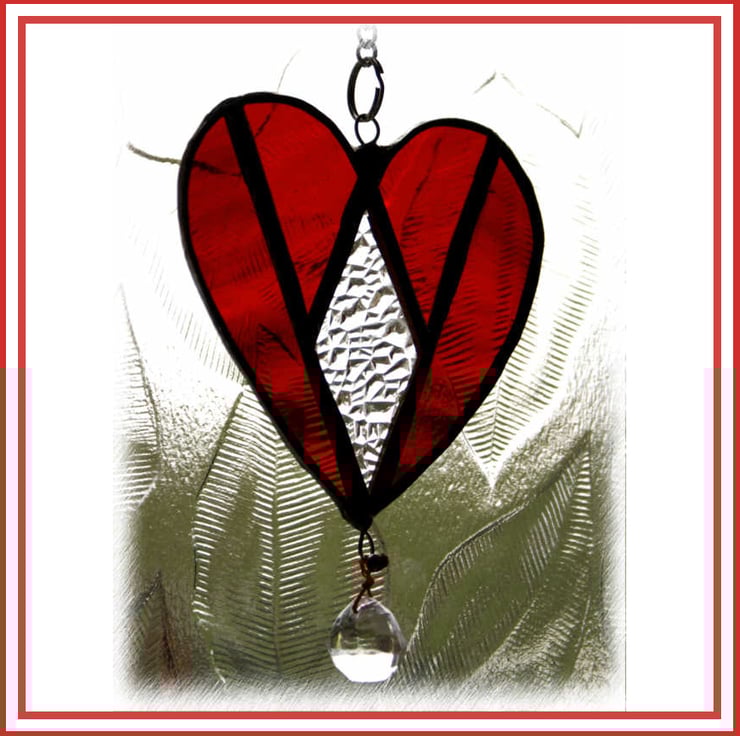This is one of my range of 4 designs of smaller, 8cm, Love Heart suncatchers.