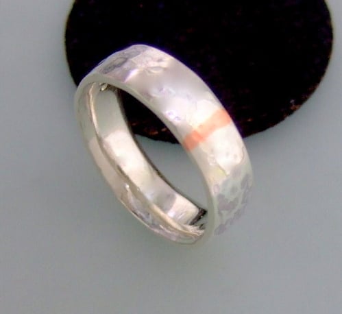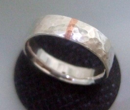 Sterling Silver with 9 carat Rose Gold highlight ring 6 mm X 2mm