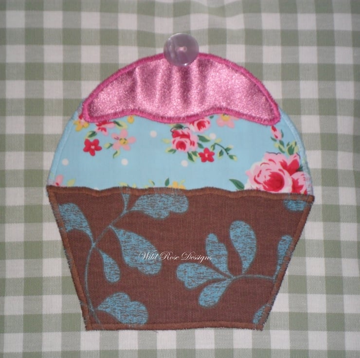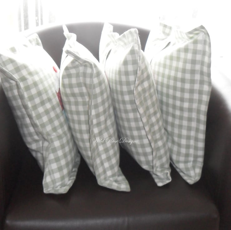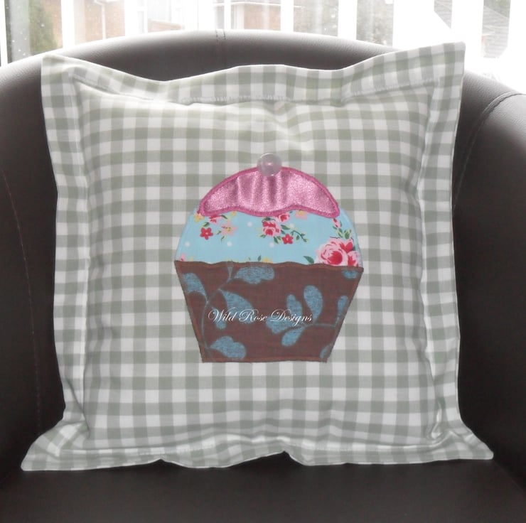 This cushion is one of a set of four, all in a Laura Ashley gingham and all featuring cupcakes.