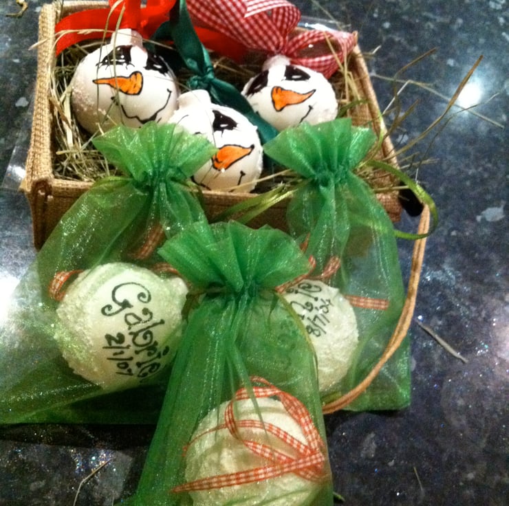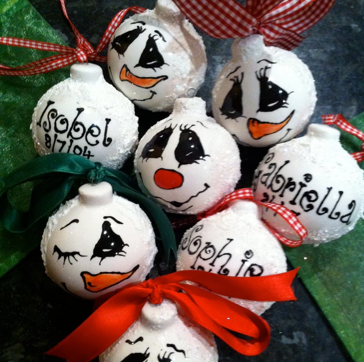 or have s cute snowman face with bumpy snow effect & iridescent glitter