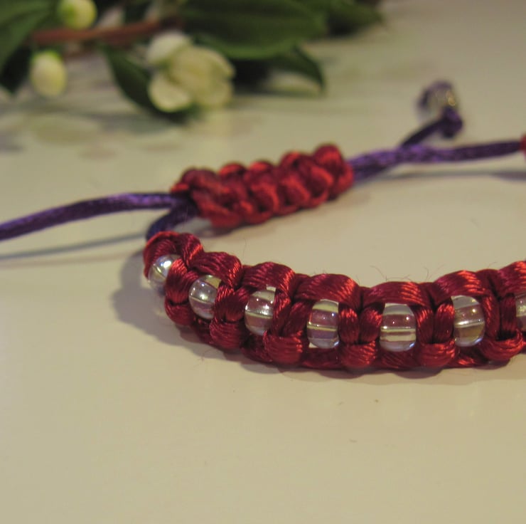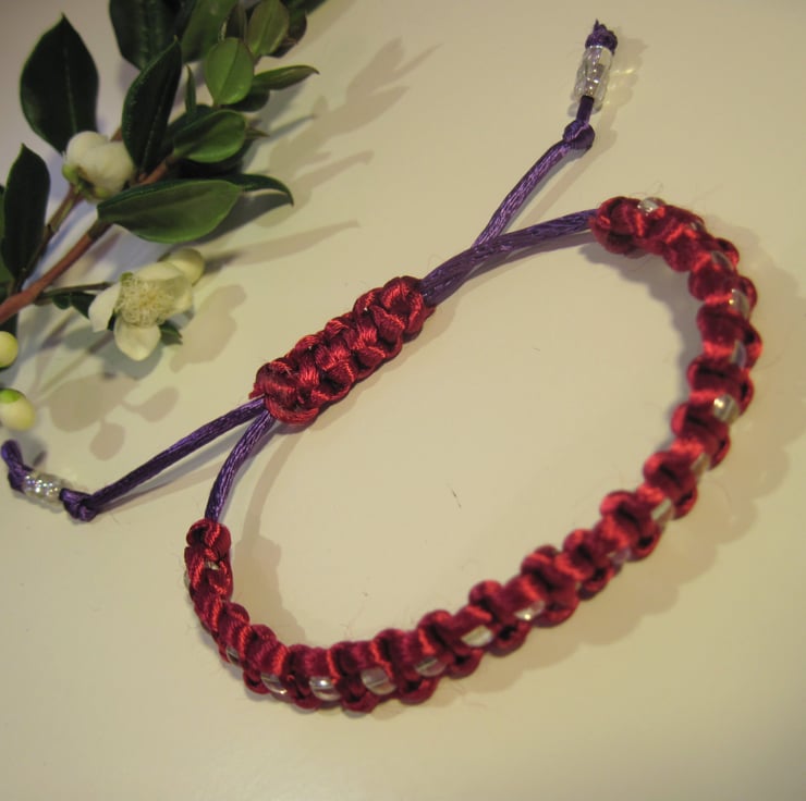 with shamballa style closure. Purple ends finished with Czech glass