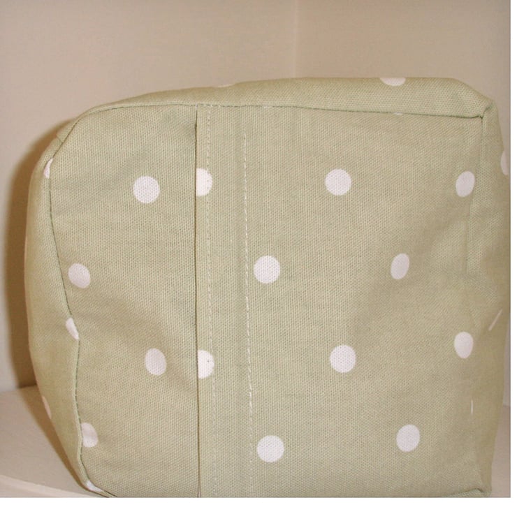 White Polka Dots on a Sage Green Background.