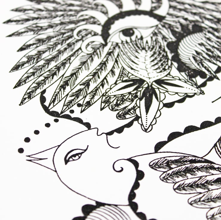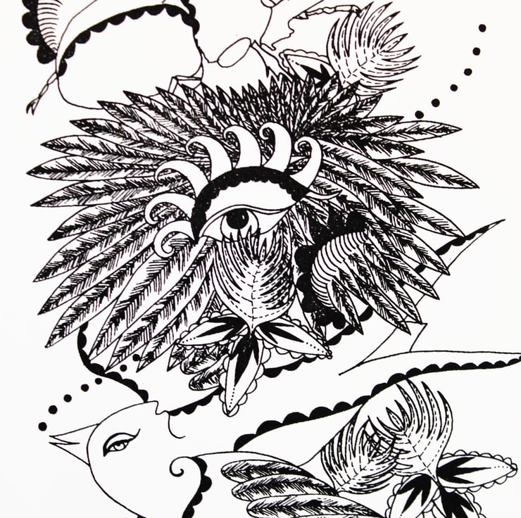 This image comes directly from a drawing in my sketchbook where I combined the stag beetle and swallow tattoo with stylised Victorian leaf patterns, feathers, and the all seeing eye.