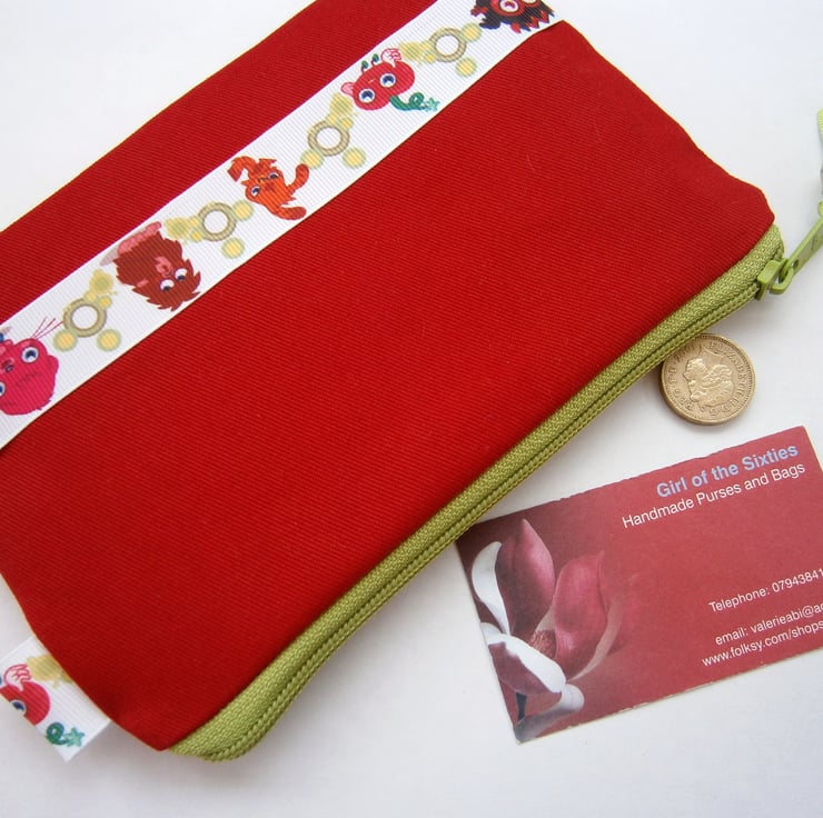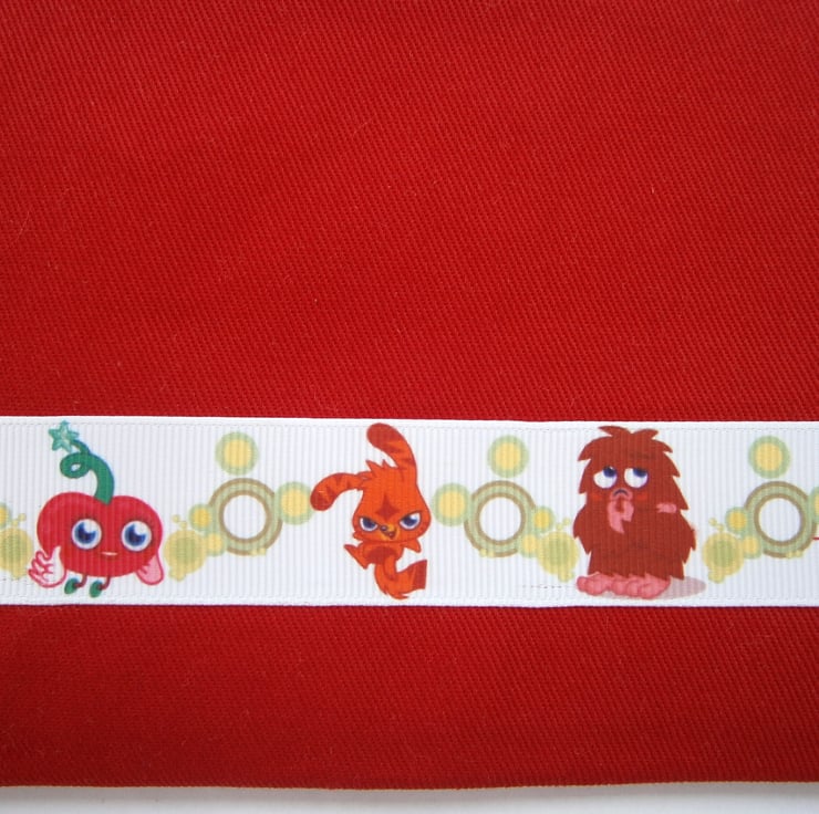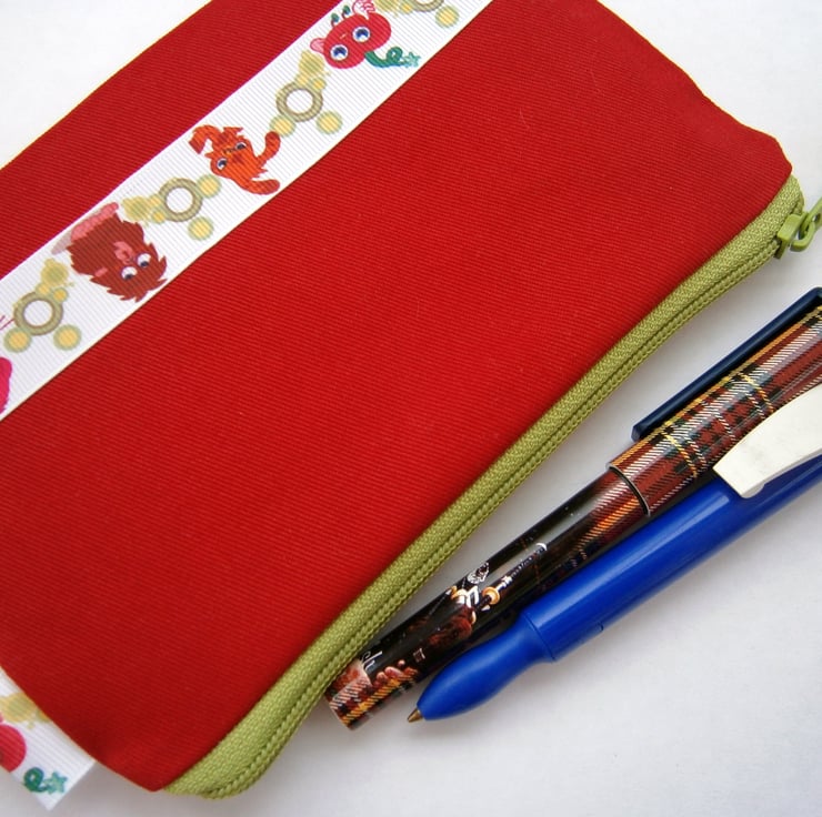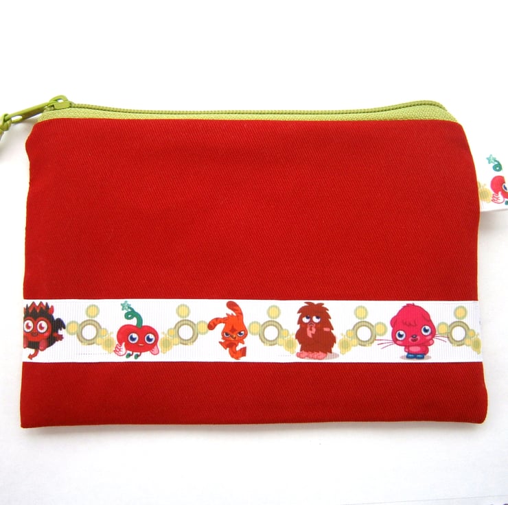 Cute Moshi Monsters pencil case with contrasting zipper and ribbon and lining
