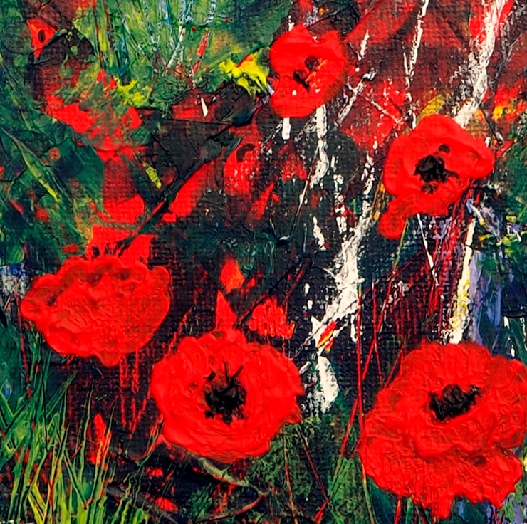 Wild Flower Meadow with Poppies, original Landscape Acrylic Painting on Canvas