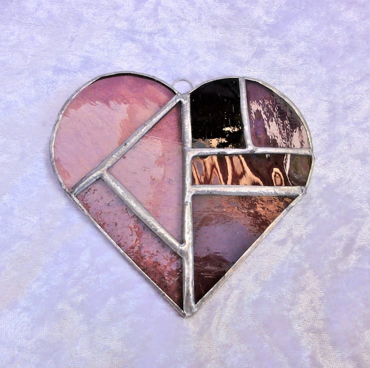 Here is a beautiful heart is made from mixture of pink stained glass.