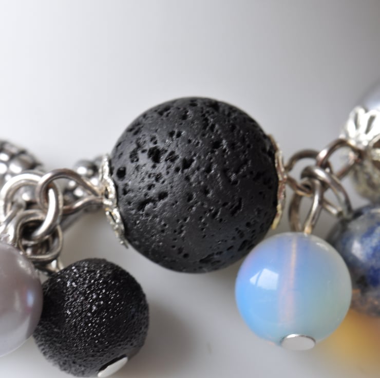 Really gorgeous piece, the opalite shines so pretty and the lava beads give a natural feel.