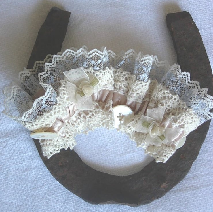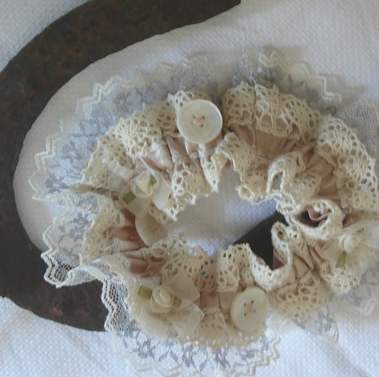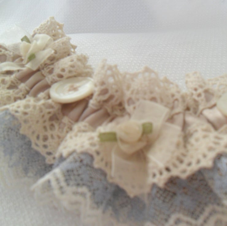 My daughter makes this lovely shabby chic, vintage styled, wedding garter to order.