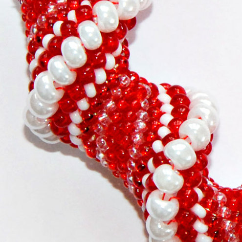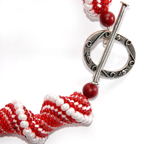 This is a bracelet made of different sized seed beads, finished with a metal clasp.