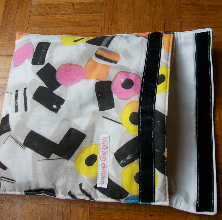 This pretty wheat bag is designed for allsorts lovers from a 100% cotton fabric, and lined with a colour coordinated fabric. There is a velcro fastening to close the flap of the cover. It measures 10" square.