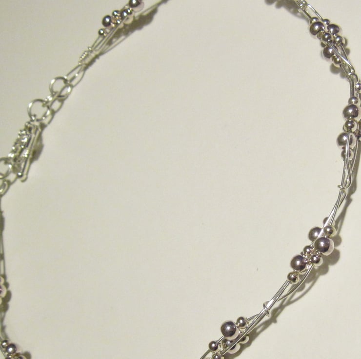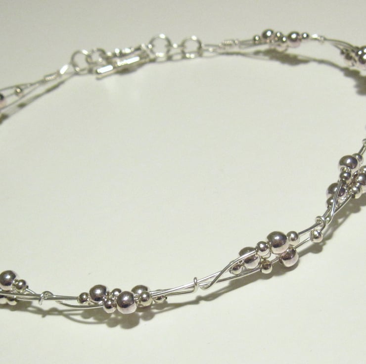 Twisted silver plated wire and metal beaded choker finished with silver plated