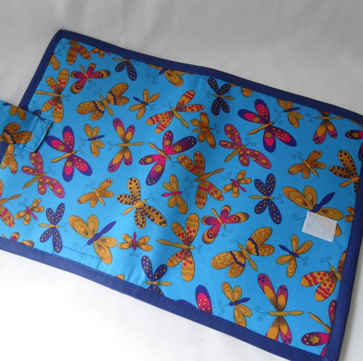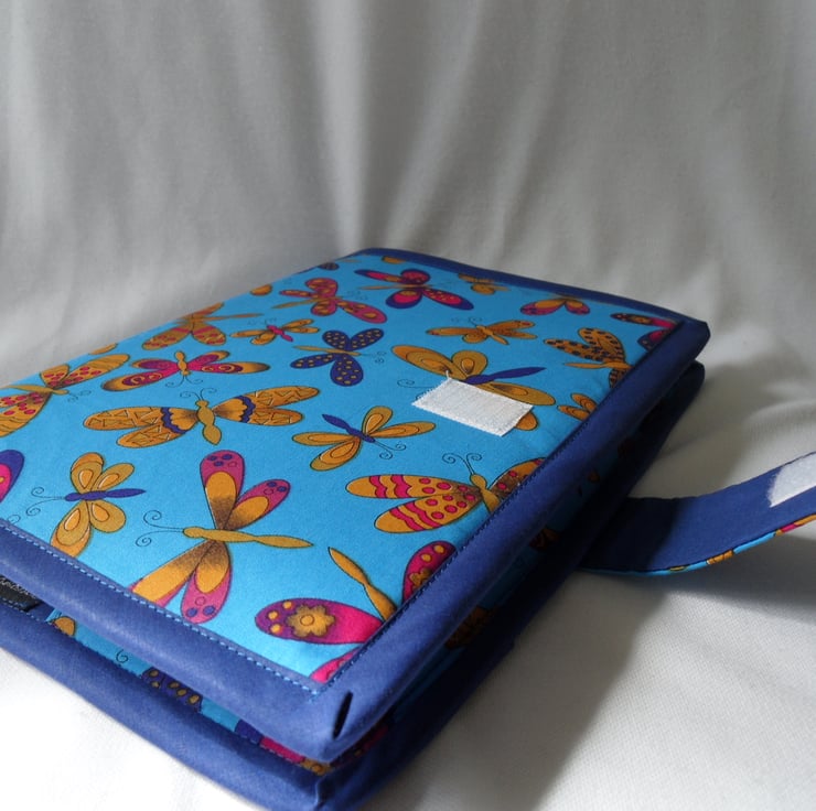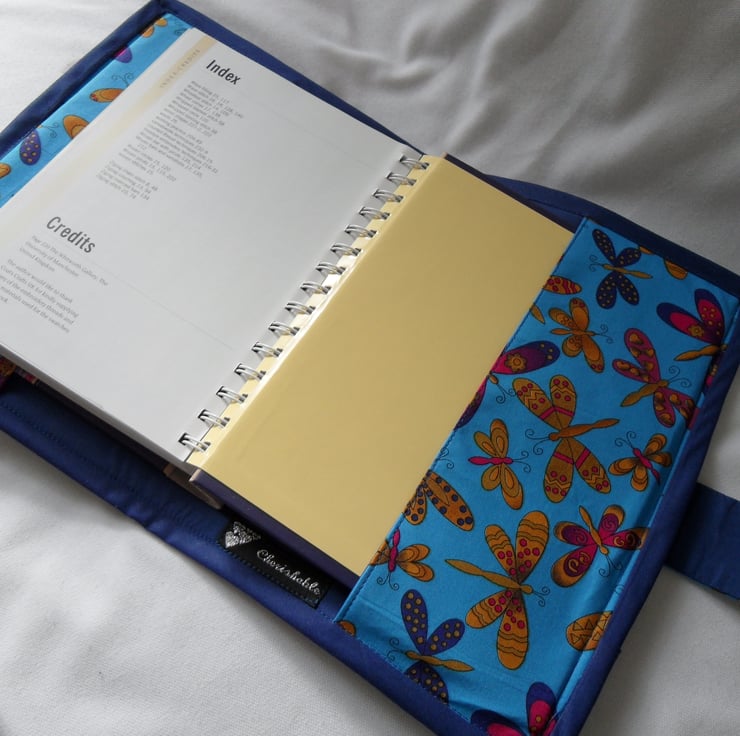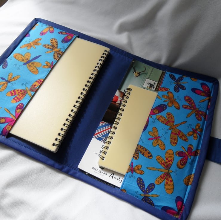 This beautiful cotton fabric with butterflies print will give anyone high sprite in a dull day. I used that to make this A5 folder which can fit A5 size notepads,books or a diary. It can also be used as a book cover. The folder is fully lined with support and edge binding. It is fastened by velcro.