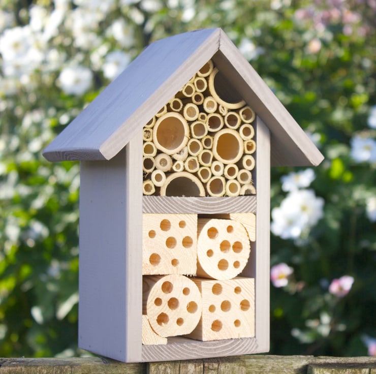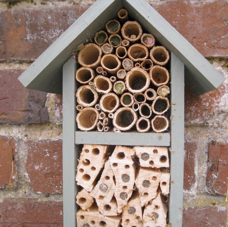 It is designed primarily to be used by solitary bees such as Mason Bees or Leafcutter Bees, which are non aggressive and excellent for pollinating in the garden, helping to increase fruit yields.