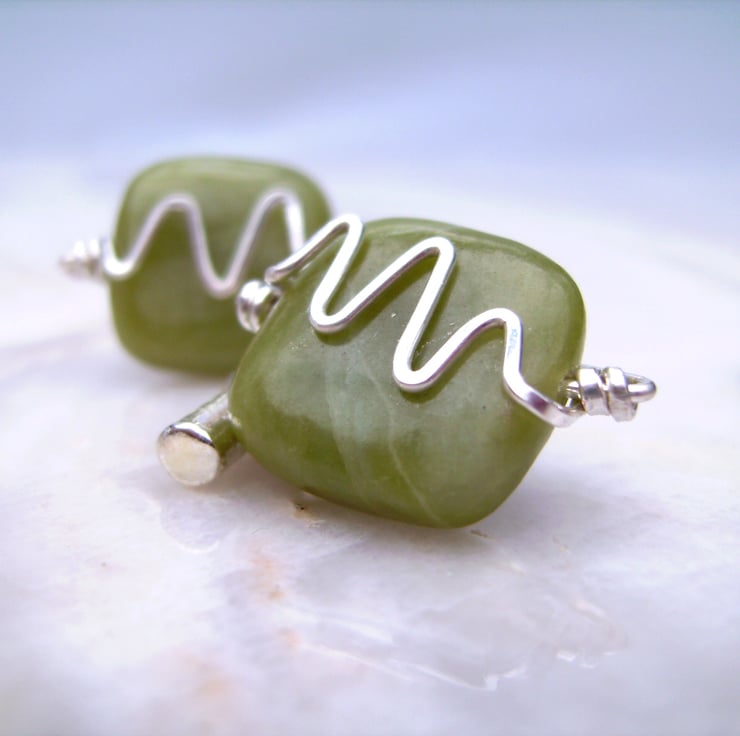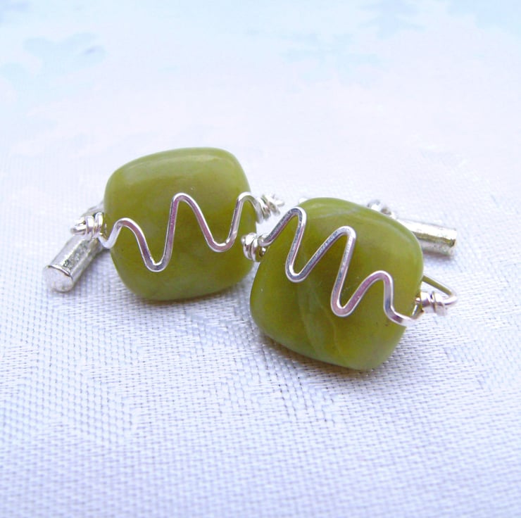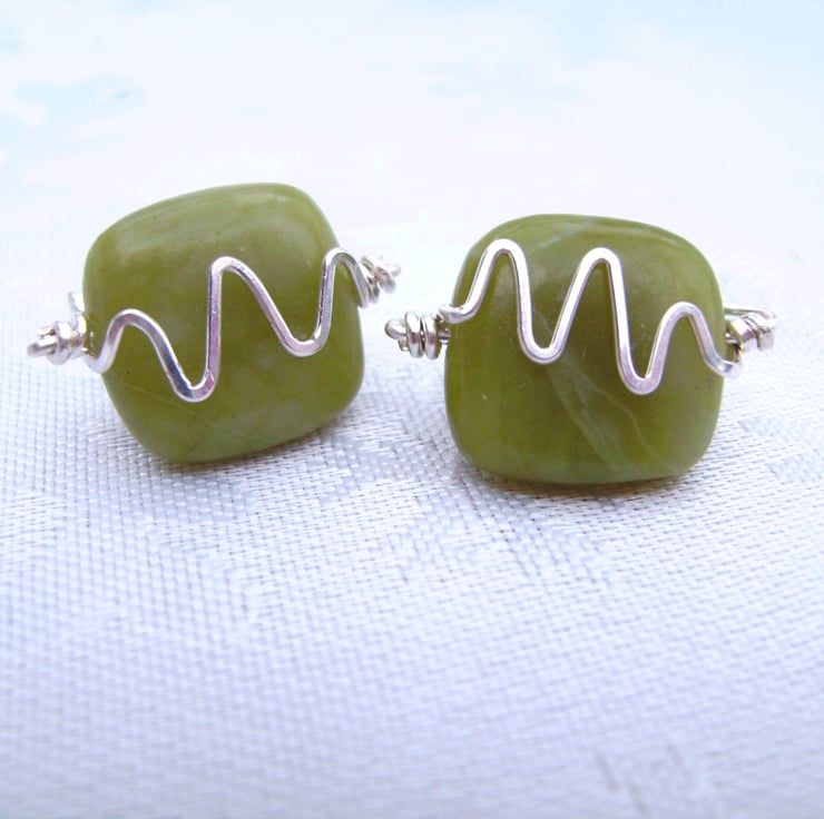 This pair of gents cufflinks has been created using 15mmm square nephrite jade beads with silver plated wire & cufflink bars.