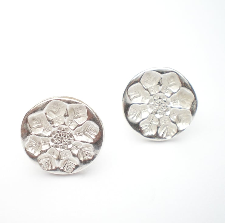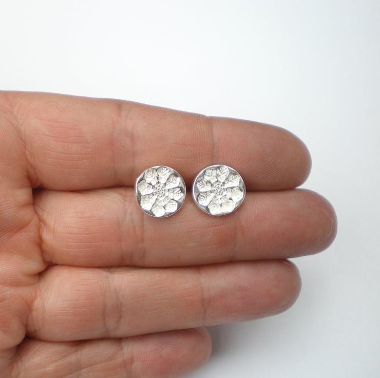 These little earrings are made from fine silver, with sterling silver ear post and butterfly backs. They measure 0.9cm in diameter.