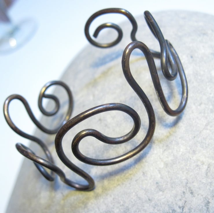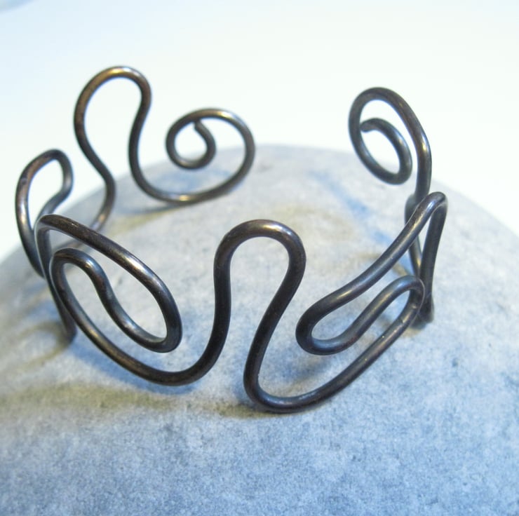 Solid Copper 2mm Formed and antiqued wire bangle.