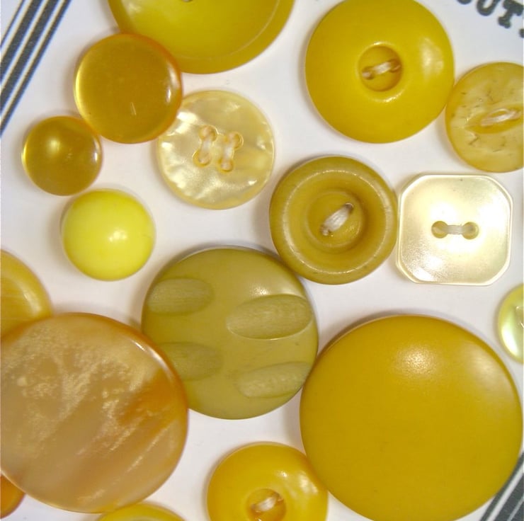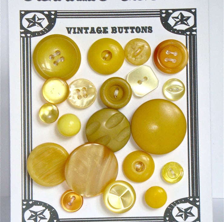 This card contains 20 vintage buttons in various shades of yellow, all different sizes and ages.