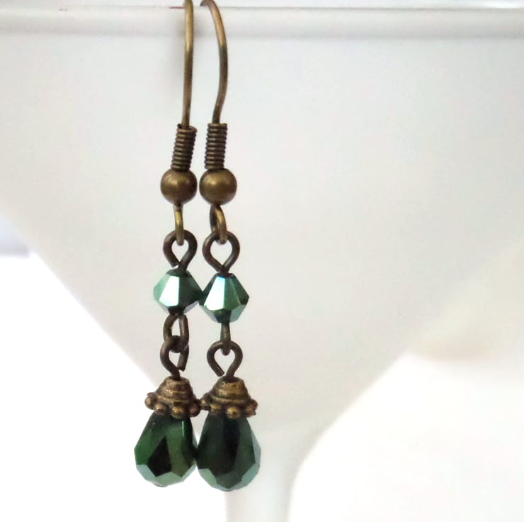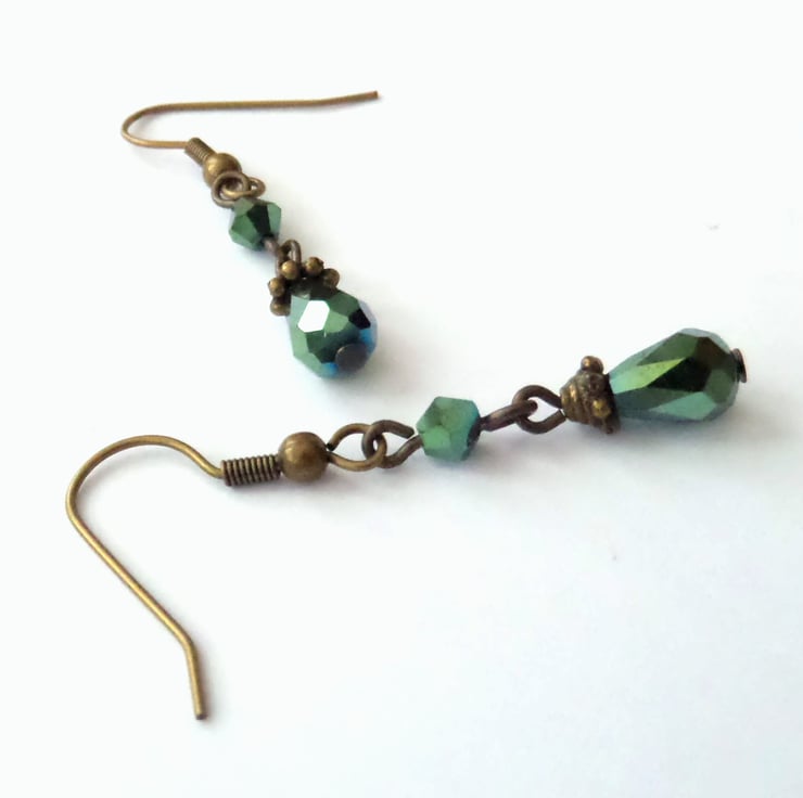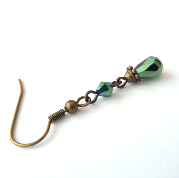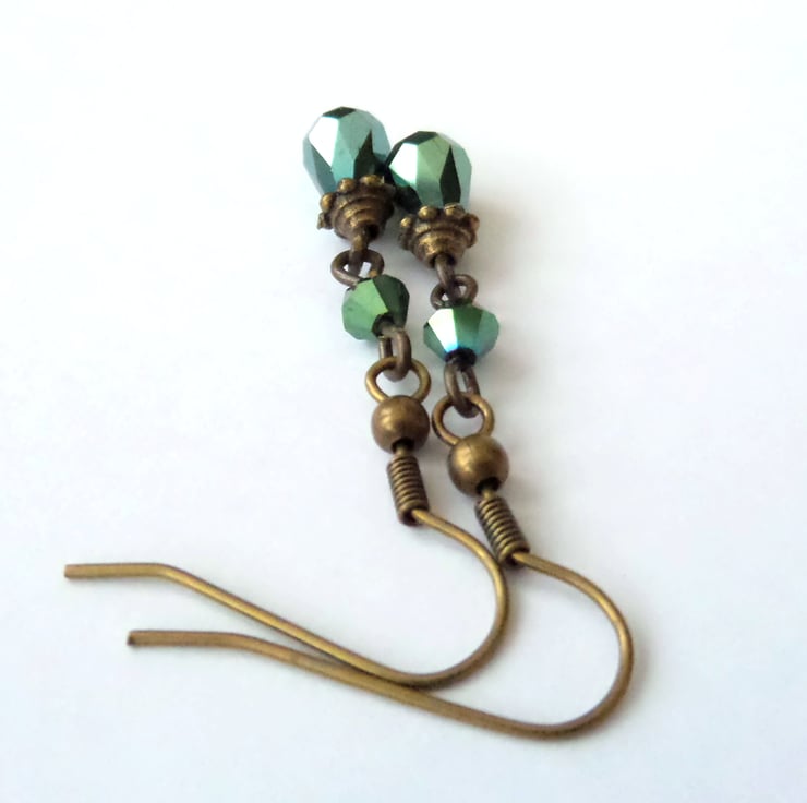 I love using crystal in my jewellery, and these metallic green beads combine so well with antique brass to create these earrings in a vintage style.