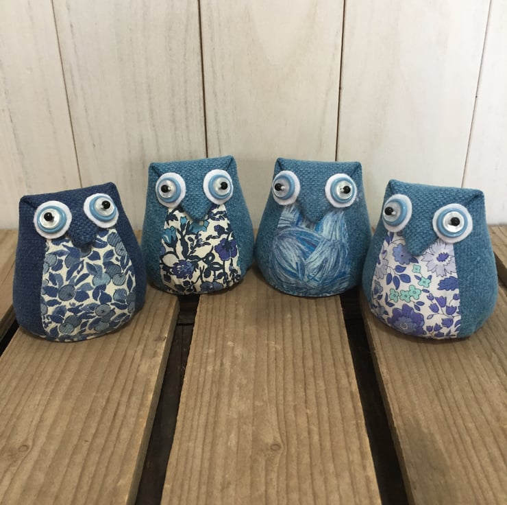 Some owls feature Liberty of London Tana Lawn vintage fabric.