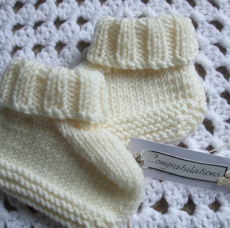 Booties have a ribbed folded cuff and measure 10cm(4") from heel to toe