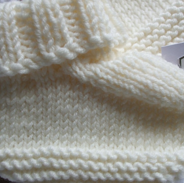 Hat has a matching ribbed folded edge ensuring a snug fit and measures 36cm(14") circumference
