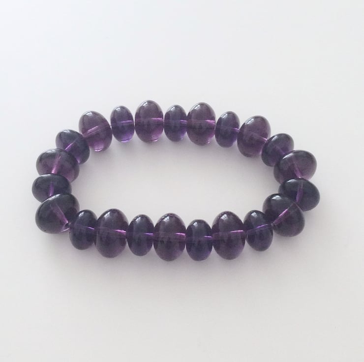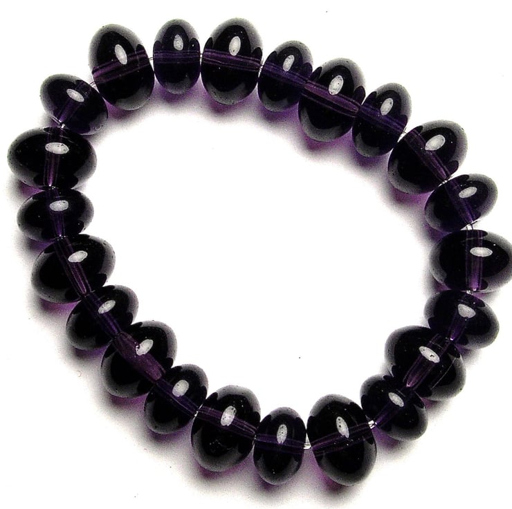 This beautiful bracelet is elasticated and is made from 2 different sizes of chunky purple glass beads.