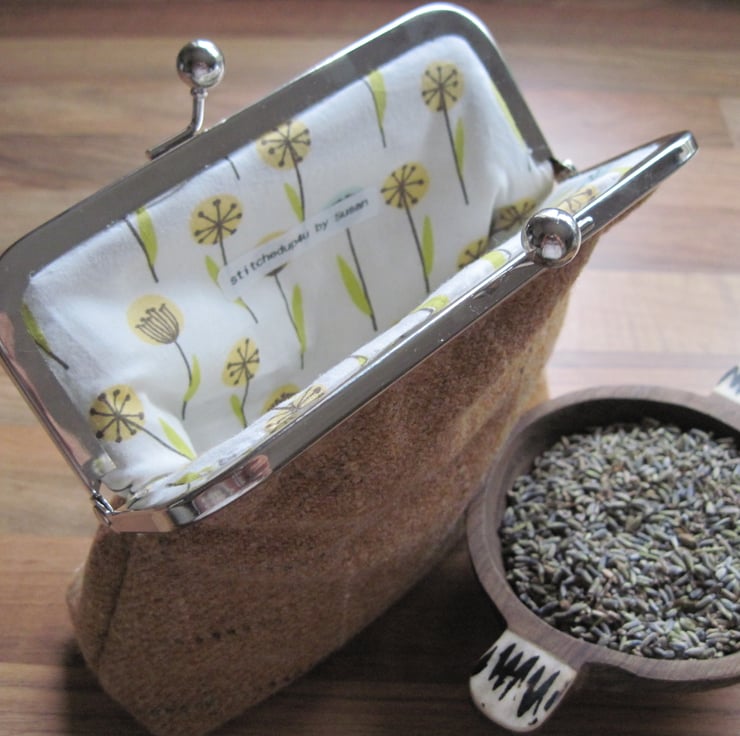 The purse measures 8ins (20cm) at its widest part & 7ins (18cm) long.